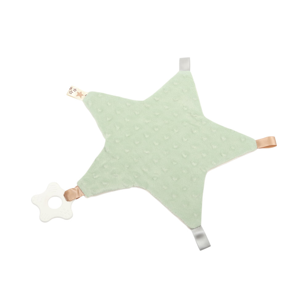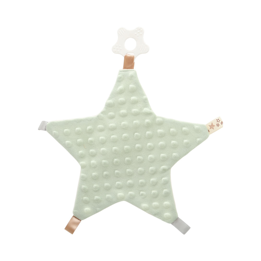 星星造型與表面豆豆絨設計,觸感豐富,發出輕柔沙沙聲,刺激寶寶的聽覺與觸覺發展,同時增添遊戲與探索樂趣。